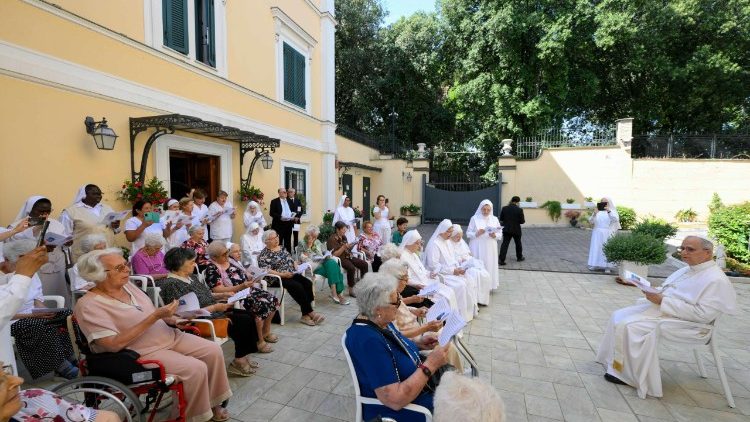 Святіший Отець підкреслив, що в кожній людині є частина Марти і частина Марії, і закликав використовувати цей період життя, щоб жити у вимірі Марії, тобто, слухаючи слово Ісуса і молячись. Він подякував за молитву, «настільки важливу, набагато більше, ніж ми можемо собі уявити» і додав: «Вік не має значення: це Ісус, Який хоче наблизитися до нас, Він стає для нас гостем, Він заохочує нас бути свідченням, чи ми молоді, чи вже не дуже молоді». «Ви є знаками надії», – підсумував Папа, подякувавши за те, що вони «дали дуже багато в житті», закликавши їх «і надалі залишатися цим свідченням молитви, віри», бути сім'єю, «яка жертвує Господеві все, що має».