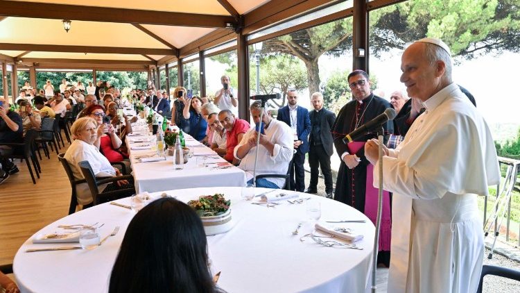 «Я дякую всім за це прийняття, за цю можливість ділитися також і в такому прекрасному місці, яке нагадує нам про красу природи, красу створіння, але також спонукає задуматися над тим, що найпрекраснішим створінням є те, яке створене на подобу, на образ Бога, яким є кожен з нас», – сказав Папа Лев XIV, вітаючи особливих гостей на території літньої резиденції Вселенських Архиєреїв у Кастель-Ґандольфо. Розділивши вранці в неділю, 17 серпня 2025 р., духовний хліб з убогими й потребуючими, якими опікується Карітас дієцезії Албано, а це сталося під час Святої Меси в санктуарії Санта-Марія-делла-Ротонда, після молитви «Ангел Господній» Святіший Отець розділив з ними хліб матеріальний, відзначивши таким чином сто днів після свого обрання на Петровий престол.