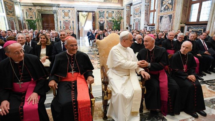 Відтак Папа закликав присутніх розвивати богослов’я, яке базується на особистій та перетворюючій зустрічі з Христом, та «прагне втілитися в конкретних подіях сучасного людства». Для цього також потрібен діалог як з різними науками та галузями життя – «ad extra», так і діалог «ad intra», тобто між богословами.