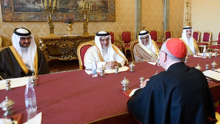 У повідомленні ватиканської пресслужби за підсумками переговорів у Державному Секретаріаті зазначається, що під час щирих перемовин було висловлено задоволення добрими двосторонніми стосунками та підтверджено бажання подальшого їх зміцнення. Далі увага була зосереджена на політиці Королівства Бахрейн щодо сприяння міжрелігійному діалогу та мирному співіснуванню різних релігій у Королівстві. Крім того, були порушені деякі теми, що становлять спільний інтерес, такі як нагальна необхідність припинення війни на Близькому Сході та зусилля на користь миру між народами.