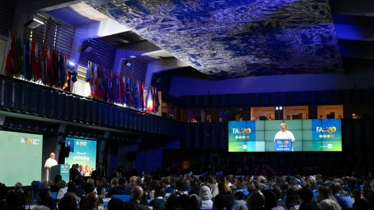 Святіший Отець висловив занепокоєння тим, що дедалі частіше бачимо використання продовольства як зброї під час війни, віддаляючи той консенсус, підтримуваний протягом цих восьми десятиліть, що «штучно створений голод є воєнним злочином». Він нагадав, що «міжнародне гуманітарне право забороняє без винятків атакувати цивільне населення та блага, необхідні для виживання населення». «Все це, здається, забулося, оскільки ми з болем спостерігаємо за постійним використанням цієї жорстокої стратегії, яка прирікає чоловіків, жінок і дітей на голод, відмовляючи їм у найелементарнішому праві: праві на життя», – мовив Папа, наголошуючи, що так далі не може тривати, бо «голод не є призначенням людини». За його словами, голод «не є лише проблемою, яку треба вирішити», йдеться про «голос, який підноситься до неба та вимагає швидкої відповіді». Би спільна боротьба, в якій «ніхто не може залишатися осторонь».