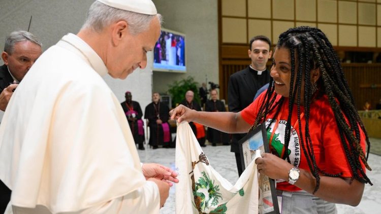 Насамперед, Святіший Отець зазначив, що під час першої такої зустрічі у Ватикані понад десять років тому Папа Франциск вказав на те, що вони принесли стяг із гаслом «Земля, дім і праця», що було «новою річчю» в Церкві, яка виявилася доброю. «Повторюючи за Папою Франциском, я сьогодні кажу: земля, дім і праця – це священні права, за якій варто боротися. Я хочу, щоб ви почули: я з вами!» – наголосив Лев XIV.