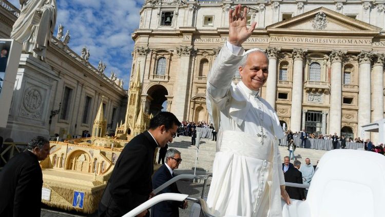 Роздумуючи разом з паломниками про таємницю Христового воскресіння, Папа Лев XIV вказав на те, як явившись своїм учням, Ісус показує їм свої рани не як докір, а як доказ любові, яка є сильнішою від будь-якої зради. Так він доручає Церкві свідчити милосердне обличчя небесного Отця.