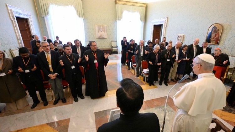 Святіший Отець розпочав зі згадки про Догматичну конституцію Другого Ватиканського Собору про Боже об’явлення «Dei Verbum», якої цього року припадає 60-річчя. Цей документ завершується цитатою з Послання святого Павла до Солунян: «Молітеся, брати, за нас, щоб Господнє слово ширилося та звеличувалося, як і у вас». Цей заклик Папа обрав як провідну думку своїх роздумів, нагадуючи, що Dei Verbum повчає, що всі ми покликані до побожного слухання Божого слова та до його рішучого звіщення, а також що потрібно дбати, щоб вірні мали широкий доступ до Святого Письма. Й це бачення відображене в статутах федерації.