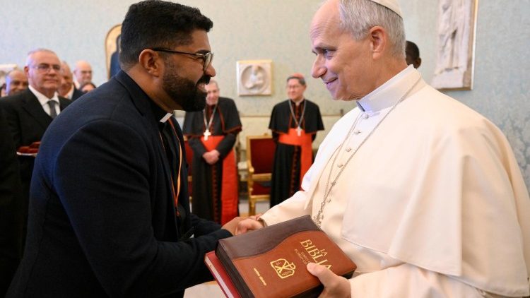 «У ці дні обговорень я закликаю вас знову переглянути свою особисту та церковну вірність цьому дорученню, яке є нічим іншим, як проголошенням керигми, спасенного таїнства нашого Господа Ісуса Христа. Насправді, ваша місія та ваше бачення повинні завжди надихатися переконанням, що Церква черпає життя не з себе самої, а з Євангелія. З Євангелія вона постійно наново відкриває напрямок свого шляху під керівництвом Святого Духа, Який навчає всього і нагадує нам усе, що сказав Божий Син», – мовив Лев XIV, підкреслюючи, що слухання та звіщення Божого слово – це церковне діяння.