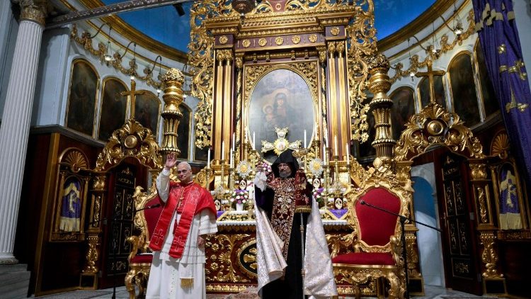 Підсумовуючи, Святіший Отець згадав про зусилля вірменського католикоса Нерсеса IV з XII століття, спрямовані на примирення між Церквами, побажавши, щоб його приклад був натхненням і для нас. «Дякуючи Вашому Блаженству за сердечне прийняття, запевняю Вас у моїй повній відданості святій справі єдності християн. Нехай же ми з відкритим серцем приймемо цей дар згори, щоб бути дедалі переконливішими свідками істини Євангелія і краще служити місії єдиної Христової Церкви!» – побажав Лев XIV.