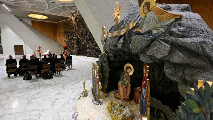 Звертаючись до присутніх, Папа наголосив, що сцена Різдва покликана нагадати, що Бог стає одним з нас, входячи в людську історію як маленька дитина. У вертепі, де споглядається таємниця смирення й любові, вірні, за його словами, відкривають для себе «необхідність знаходити моменти тиші та молитви, щоб віднайти себе і увійти в спілкування з Богом».