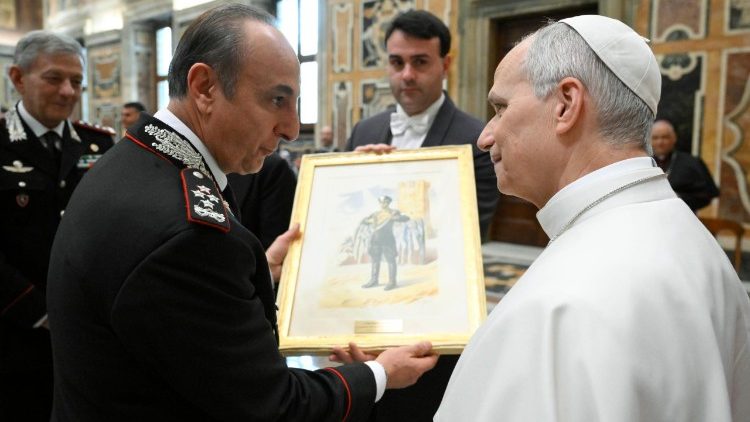 «Дякую вам за службу, яку ви виконуєте, зокрема довкола Ватикану та в місті Римі. Бажаю вам завжди виконувати її з чистим сумлінням, залишаючись вірними принципам і правилам Корпусу карабінерів, а також як християни, вірними Євангелію, що наповнює кожен намір і кожну дію любов’ю Христа», – побажав на завершення Лев XIV.