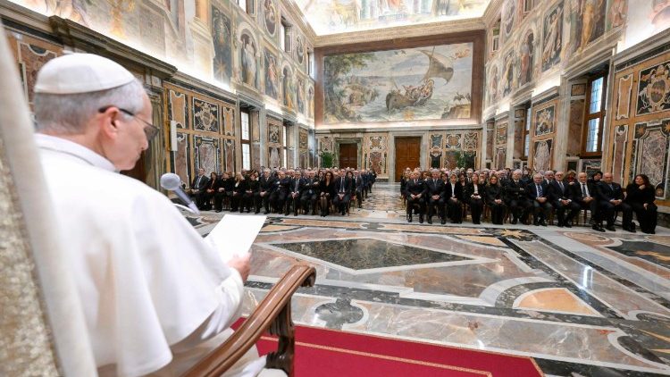 Папа пояснив, що якщо, з одного боку, закони є «вираженням народної волі», то сумління, з іншого, «стає вираженням особистої людяності» префектів. «Ви добре знаєте, яка внутрішня дисципліна потрібна, щоб керувати і підтримувати порядок у власних думках, перш ніж у Республіці; саме тому служити країні означає посвятити себе з ясним умом і чистою совістю громаді, тобто спільному благу», – сказав він, додаючи, що в цьому сенсі висока посада вимагає «подвійного свідчення». Перше здійснюється у «співпраці між різними органами та адміністративними рівнями», а друге – «поєднуючи професійні обов’язки з відповідною поведінкою в житті».