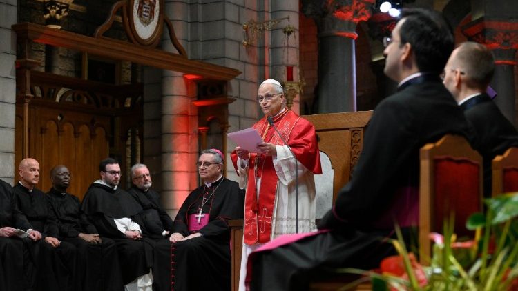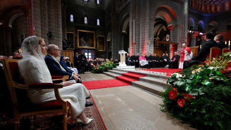 Зустріч розпочалась словами привітання архиєпископа Монако Домініка-Марі Давіда. У своїй промові він зазначив, що катедральний собор Непорочного Зачаття, попри те, що є кам’яною спорудою становить серце архидієцезії. «Скеля, на якій зведений храм нагадує, що саме Христос є нашою справжньою Скелею, фундаментом і наріжним каменем Свого Тіла, яким є Церква», – підкреслив архиєпископ. Після спільної молитви Літургії Годин, Папа Лев звернувся до зібраних з пастирським словом.