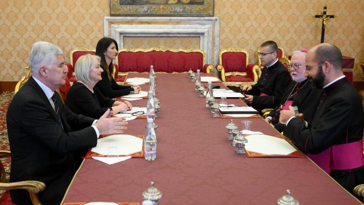 Під час дружньої бесіди в Державному Секретаріаті, як читаємо в повідомленні Ватиканської пресслужби, було наголошено на взаємній вдячності за добрі двосторонні відносини та за внесок місцевої Церкви в життя суспільства. У цьому контексті, зокрема, йшлося про становище католицької спільноти та деякі відкриті питання у стосунках між Церквою та державою. У ході подальших переговорів відбувся обмін думками щодо розширення Європейського Союзу з включенням країн Західних Балкан.