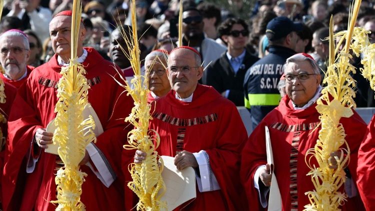Богослужіння розпочалося біля обеліска посередині площі благословенням пальмових і оливкових галузок та процесійною ходою на спомин про в’їзд Ісуса до Єрусалиму. Далі почалася Свята Меса, яка має спеціальну назву – «Свята Меса Страстей Господніх». Під час неї звучить довге євангельське читання, яке розповідає про останню вечерю Ісуса з учнями, про молитву в Оливному саду, про ув’язнення, суд, розп’яття, смерть і поховання Ісуса Христа. Це богослужіння є введенням у Великий Тиждень, протягом якого християни покликані день за днем брати активну участь в різних богослужіннях, що пригадують основні моменти нашого спасіння.