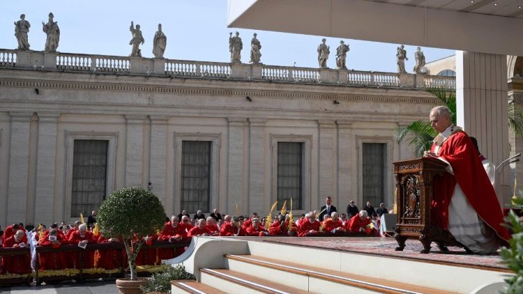 Після прочитання Євангелії страстей Господніх згідно зі святим Матеєм, що розпочалося розповіддю про допит Христа перед Пилатом, який запитував його, чи Він є Царем Юдейським, Папа запросив поглянути на Ісуса як на Царя миру. «Дорогі браття й сестри, коли Ісус ступає дорогою хреста, ми слідуємо за Ним, йдучи Його слідами. І, йдучи разом з Ним, споглядаємо Його страждання задля людства, Його розбите серце, Його життя, яке стає даром любові», – сказав він на початку проповіді.