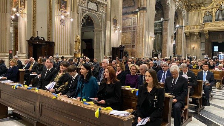Богослужіння, приурочене до вшанування пам’яті жертв Голодомору 1932-1933 років, відбулося з ініціативи Посольства України при Святому Престолі. Святу Месу співслужили кардинал Клаудіо Ґуджеротті, Префект Дикастерії для Східних Церков, владика Діонісій Ляхович, Апостольський екзарх для українців візантійського обряду в Італії, та численні священики, між якими працівники дикастерій Римської Курії, представники чернечих спільнот і священнослужителі екзархату УГКЦ в Італії. На запрошення Посла України прибули представники дипломатичного корпусу, акредитованого при Святому Престолі, та численна українська громада Риму, представлена богопосвяченими особами та мирянами.