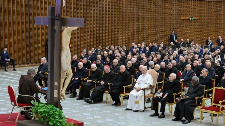 «Щастя не полягає в тому, щоб захищатися від реальності, а в тому, щоб навчитися приймати її навіть тоді, коли вона завдає болю, не дозволяючи їй нас пригнічувати. Саме в цьому християнське життя стає конкретним, і ми вчимося зберігати радість, яка залежить не від того, як складаються обставини, а від того, як ми вирішуємо їх переживати», – наголосив проповідник Папського дому о. Роберто Пазоліні, OFM Cap., завершуючи цикл великопосних проповідей, які він щоп’ятниці виголошував у залі Павла XIV у Ватикані для Папи та Римської курії.
