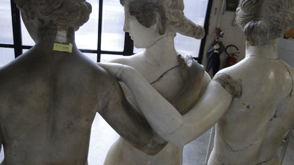 (梵蒂冈新闻网)为纪念义大利雕塑大师安多尼·卡诺瓦(Antonio Canova)逝世二百周年,梵蒂冈博物馆修复了最原始的“美惠三女神”雕塑像,从9月22日起首次公开展出。卡诺瓦于1802年被教宗庇护七世(Pio VII)任命为艺术与考古遗产总监和梵蒂冈博物馆馆长。他是无可争议的新古典主义艺术大师。从1812至1817年,他对“美惠三女神”雕塑像进行再创作,该作品是对古希腊罗马时期这三位神话人物最好的诠释。