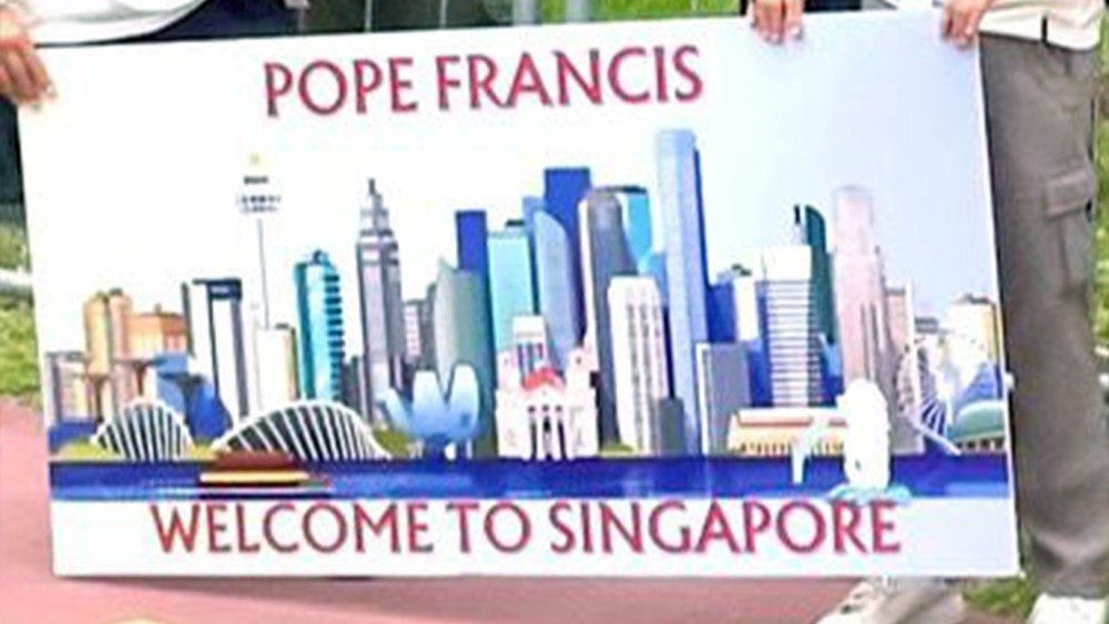 Самалёт спыніўся ў спецыяльна адведзенай зоне для цырыманіяльных сустрэч. Нунцый і кіраўнік пратакола Сінгапура падняліся на борт праз пярэдні трап, каб прывітаць Францішка. Затым Святы Айцец спусціўся на лётнае поле, дзе яго чакала афіцыйная дэлегацыя.