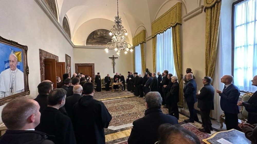 Напрыканцы, пасля благаслаўлення, якое суправаджалася спевам марыйнага антыфона Alma Redemptoris Mater, новы прэфект асабіста прывітаў прысутныя дэлегацыі.