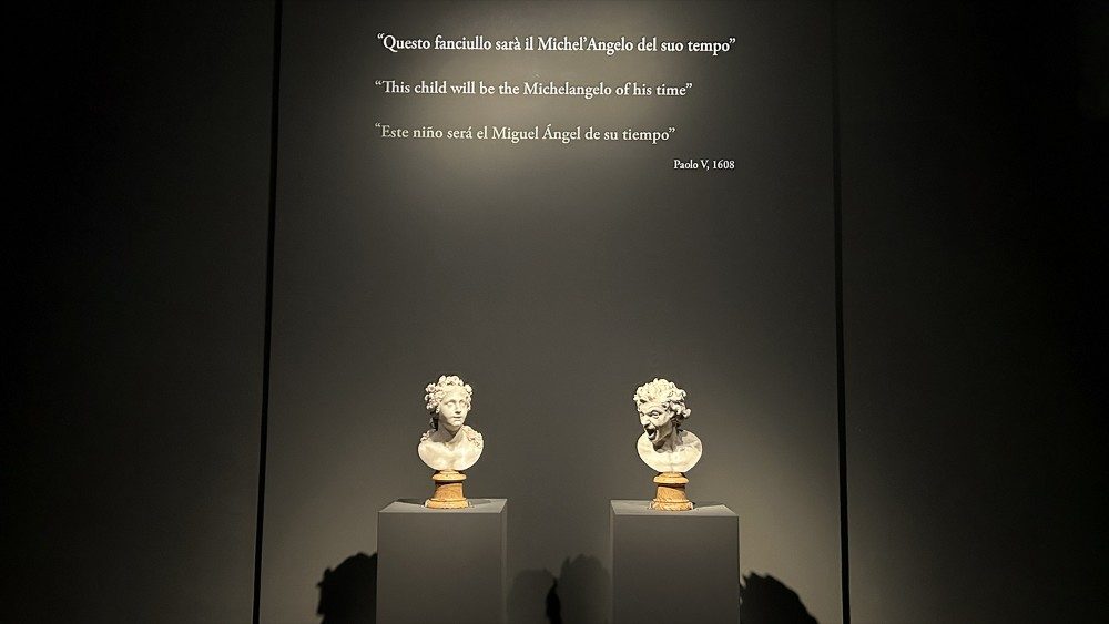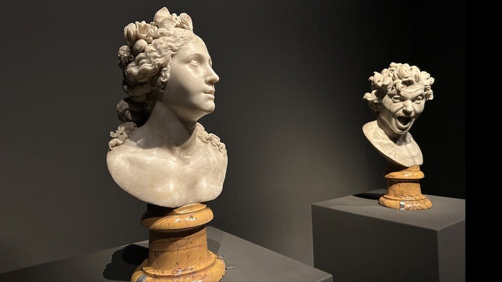 У экспазіцыі прадстаўлены дзве юнацкія скульптуры Берніні: Душа благаслаўлёная ў выглядзе жанчыны з прыгожым тварам, звернутым да нябёсаў, і Душа праклятая, якая перадае жах, пакуты і разгубленасць чалавека на парозе пекла. Апошняя ўяўляе сабой аўтапартрэт Берніні, які ён стварыў, гледзячы на сябе ў люстэрку пры святле свечкі: маршчыны на ілбе, растрапаныя валасы, рот, раскрыты ў крыку. Кажуць, што дзеля таго, каб праўдзіва перадаць выраз твару чалавека ў пекле, скульптар глядзеўся ў люстэрка, падпальваючы сябе полымем свечкі, - патлумачыла супрацоўніца Мадрыдскага ўніверсітэта Хелена Перэс Гаярда, якая разам з дырэктарам Ватыканскіх музеяў Барбарай Ятай курыравала выставу.
