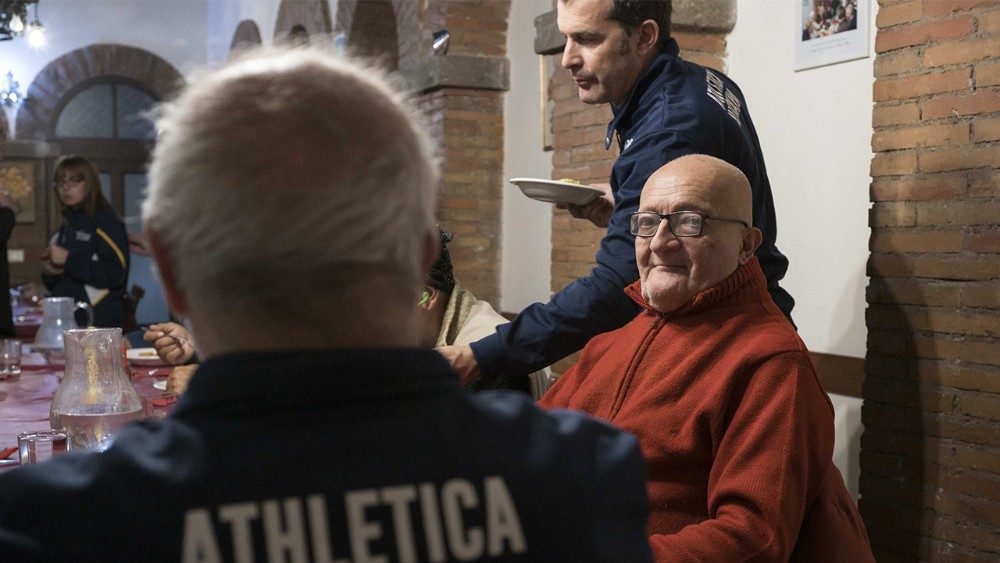 Прытулкам, створаным па ініцыятыве Францішка, апекваюцца Дыкастэрыя па міласэрным служэнні, супольнасць святога Эгідзія і шматлікія валанцёры. Святочнае меню ўключала макароны з соусам песта, запечаную індычку з зялёнай фасоляй, мандарыны і дэсерт.