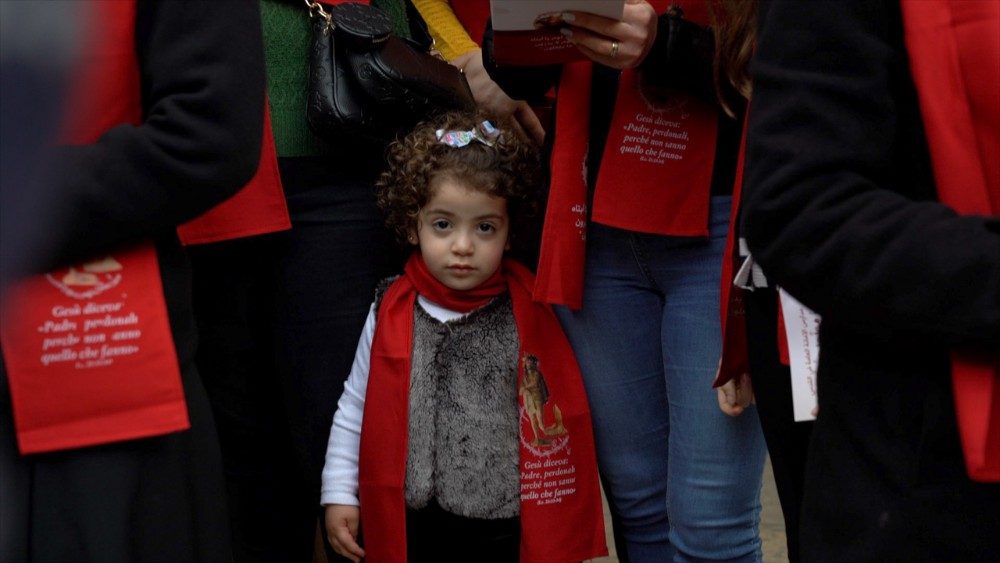 Smírčí pobožnost svolal v duchu odpuštění vikář Kustodie Svaté země, otec Ibrahim Faltas. „Otče, odpusť jim, neboť nevědí, co činí“, zněla totiž slova napsaná na červených štolách, které nosili všichni studenti (Lk 23,33-34). „Chceme všem předat poselství: že musíme odpouštět“, řekl otec Faltas pro Vatican News. Proto bylo vybráno místo, odkud se průvod vydá: „Začali jsme u zničené sochy. Všichni byli zasaženi a zarmouceni tím, co se stalo, a tak jsme chtěli naše studenty poučit o odpuštění“.
