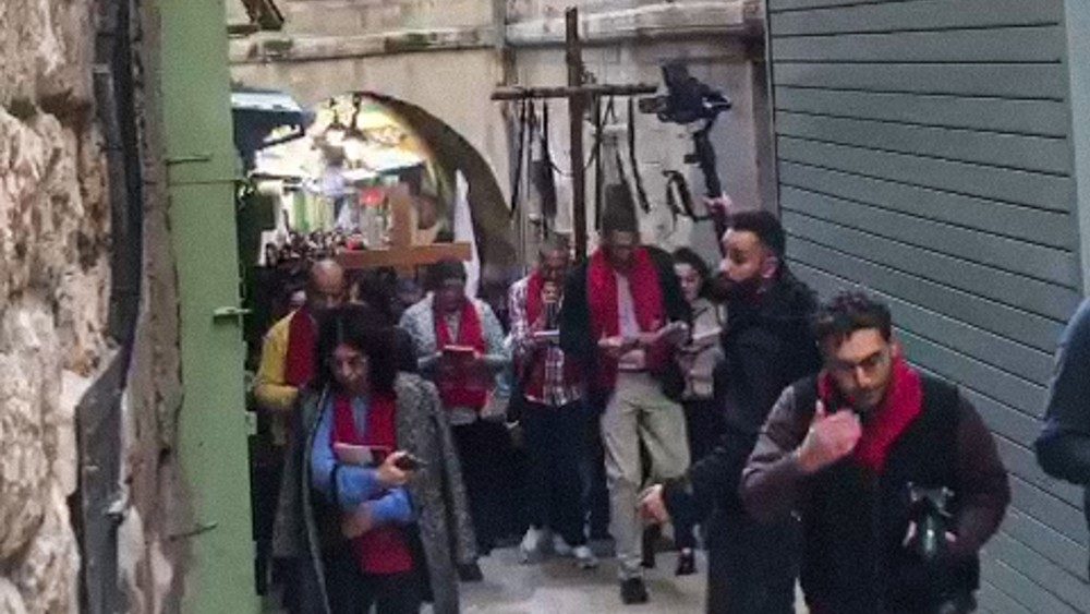 Více než 500 studentů jeruzalémských škol s jejich učiteli v čele s patriarchou Pierbattistou Pizzaballou, kustodem Svaté země Francescem Pattonem prošlo dnes dopoledne ulicemi Jeruzaléma při křížové cestě, která vycházela z Kláštera bičování, v jehož kostele 2. února židovský extremista vážně poškodil sochu Ježíše.