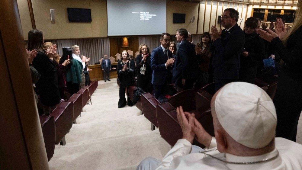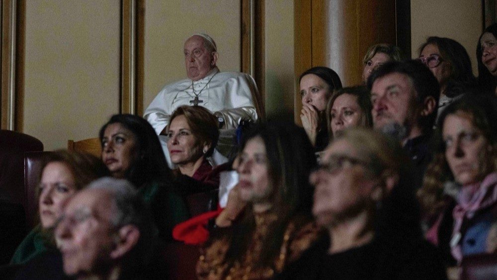 František se zúčastnil promítání dokumentárního filmu režiséra Afinejevského "Svoboda v plamenech", který líčí hrůzy války od začátku ruské agrese 24. února 2022. Odpolední akce ve Vatikánu se konala u příležitosti 10. výročí Revoluce důstojnosti. Papež pozdravil a požehnal přítomným, mezi nimiž byl i židovský muž z New Jersey, který mu předložil svazek s fotografiemi rukojmích unesených Hamasem.