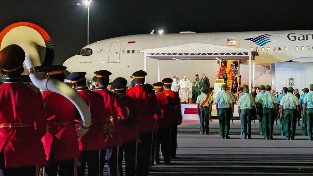 Přistání letadla A330-Garuda Indonesia indonéského vlajkového dopravce v 19.06 hodin místního času, tedy v 11.06 hodin římského času, v Port Moresby na Papui-Nové Guineji znamená začátek druhé etapy papežovy 45. apoštolské cesty, která potrvá na Papui-Nové Guineji až do 9. září, se zastávkami v hlavním městě Port Moresby a ve městě Vanimo.