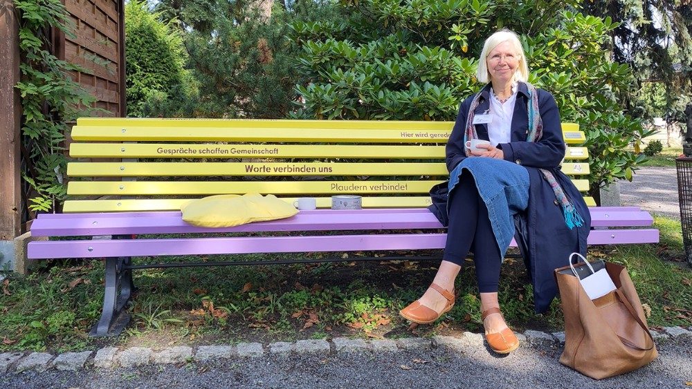 Entstanden ist die Idee der „Quasselbank“ in Zusammenarbeit mit dem Berliner Bezirk Reinickendorf. Dort gibt es eine Einsamkeitsbeauftragte – die erste in Deutschland, sagt Luzia Hömberg. Bezirk und Erzbistum haben dann einträchtig beschlossen, auch auf dem Friedhof eine der sogenannten Quasselbänke aufzustellen.