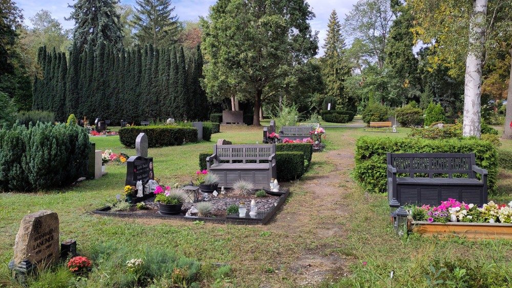 Ein Farbklecks der Gemütlichkeit an einem Ort, wo man ihn am wenigsten erwartet. Auf dem Friedhof St. Sebastian in Berlin-Reinickendorf hat die Seelsorgerin Luzia Hömberg ein einfaches, aber wirksames Zeichen gesetzt: eine Bank, auf der man reden kann, über wonach auch immer einem gerade ist, hier auf dem Friedhof. An diesem Ort, wo sonst Stille herrscht und Trauer, entsteht Nähe.