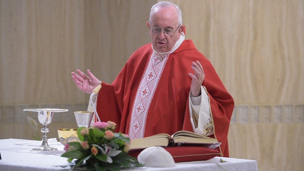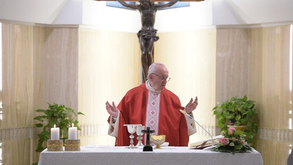„Und das Zeugnis verursacht eine Neugier in den Herzen der anderen, und so kann der Heilige Geist in sie eindringen. Die Kirche glaubt durch Anziehung und wächst durch Anziehung. Und die Vermittlung des Glaubens wird durch das Zeugnis weiter gegeben, bis zum Martyrium. Wenn man diese Kohärenz im Leben sieht, dann weckt das immer Neugier. Da fragt sich einer, wie denn dieser so leben kann und weshalb er ein Leben im Dienste der anderen führt? Jene Neugier ist der Samen für den Heiligen Geist, der das dann wachsen lässt. Die Vermittlung des Glaubens lässt uns gerecht sein. Der Glaube rechtfertigt uns, und in der Glaubensvermittlung schenken wir den anderen die wahre Gerechtigkeit.“