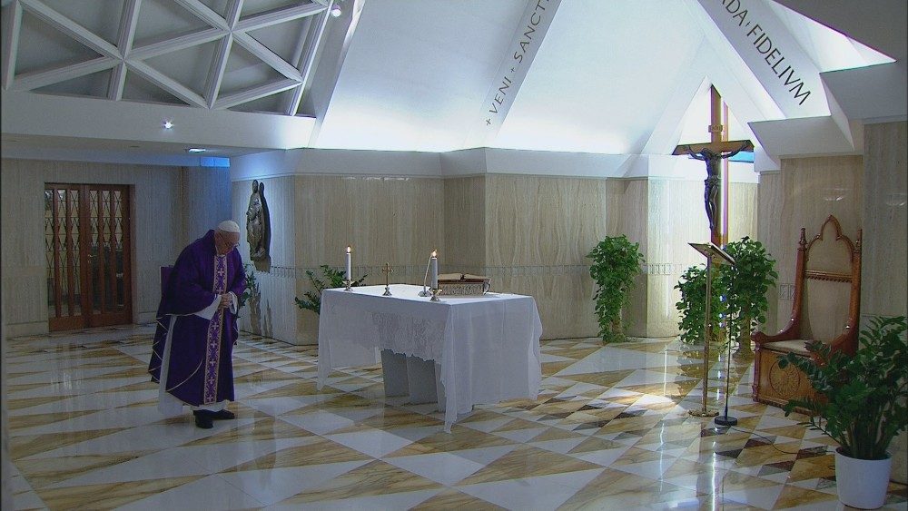 Franziskus schloss seine Predigt mit einer Bitte um Fürsprache: „Bitten wir dem Herrn um die Gnade, gegen den bösen Geist zu kämpfen, zu diskutieren, wenn wir diskutieren müssen, aber dass wir vor dem Geist der Verbissenheit den Mut haben, zu schweigen und es zuzulassen, dass die anderen reden. Das gleiche gilt gegenüber der kleinen täglichen Verbissenheit des Geschwätzes: sie reden lassen. In Schweigen, vor Gott.“