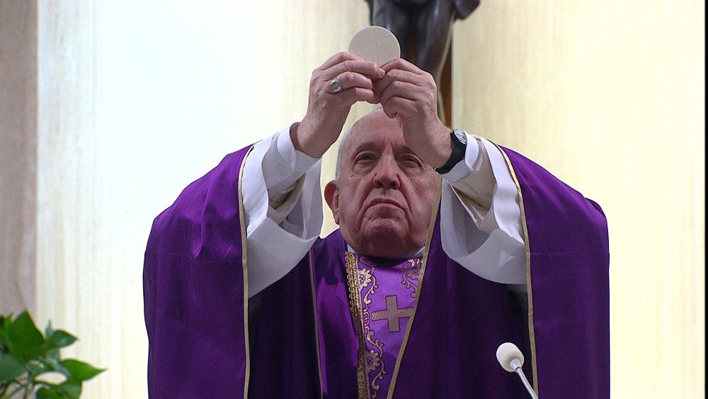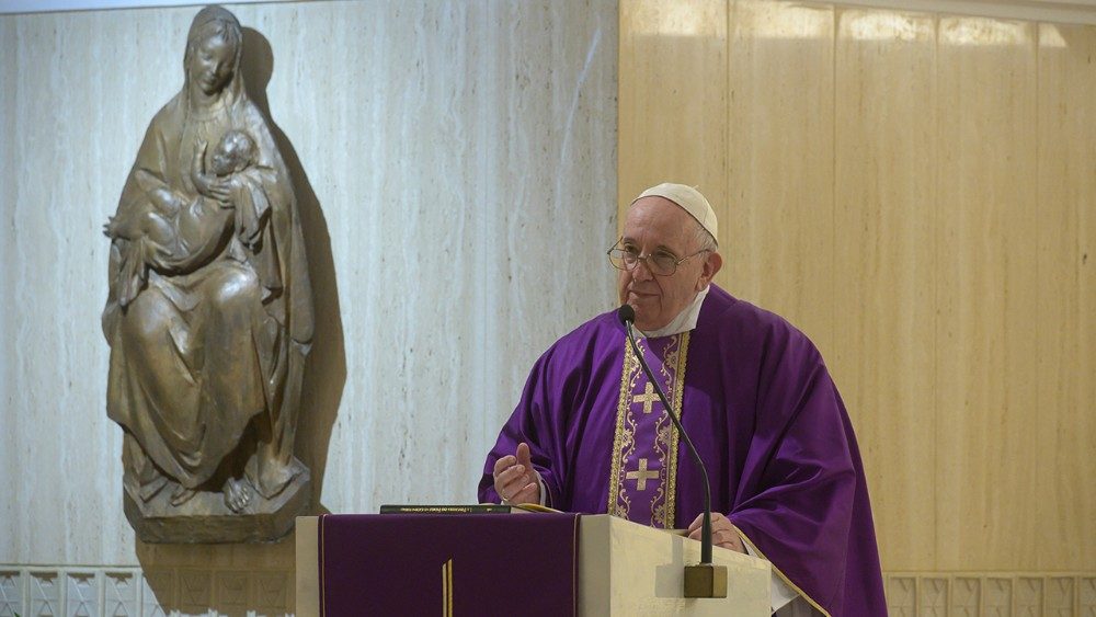 „In diesen Tagen will ich die Messe für die Kranken dieser Coronavirus-Epidemie, für Ärzte, Krankenschwestern, Freiwillige, die viel helfen, Familienangehörige, alte Menschen in Altersheimen, Gefangene, die eingesperrt sind, abhalten. Lassen Sie uns in dieser Woche gemeinsam dieses starke Gebet zum Herrn beten: „Erlöse mich, Herr, und sei mir gnädig. Mein Fuß steht auf festem Grund. Den Herrn will ich preisen in der Gemeinde“. (Ps 26 (25), 11-12)