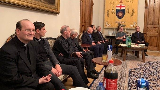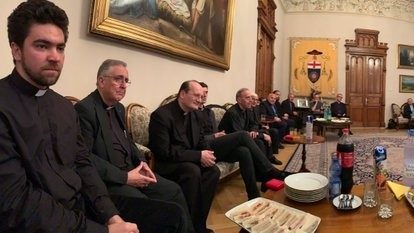 Vor dem Abendessen traf er sich etwa eine Stunde lang, wie es auf apostolischen Reisen oft der Fall ist, mit seinen „Mitbrüdern“, die in Rumänien arbeiten. Das erklärte der kommissarische Direktor des vatikanischen Presseamtes Alessandro Gisotti. An dem Treffen nahmen 22 Ordensleute teil; 14 davon sind Rumänen. Auch der stellvertretende Generalobere, Pater Barreto, sowie der Provinzial für die Mittelmeerprovinz (zu der Rumänien gehört), Pater Matarazzo, waren anwesend, so Gisotti.