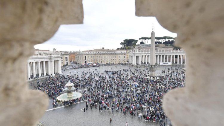 Der Papst betete, wie an Feiertagen üblich, von einem Fenster des Apostolischen Palastes aus den „Engel des Herrn“ mit Besuchern auf dem Petersplatz, die sich vom nassgrauen Wetter nicht abschrecken ließen. In seiner kurzen Ansprache ging Franziskus von den Seligpreisungen Jesu aus, wie das Evangelium nach Matthäus sie an diesem Feiertag wiedergibt.