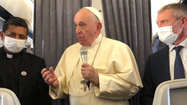 Franziskus auf dem Rückflug von Athen nach Rom Franziskus auf dem Rückflug von Athen nach Rom