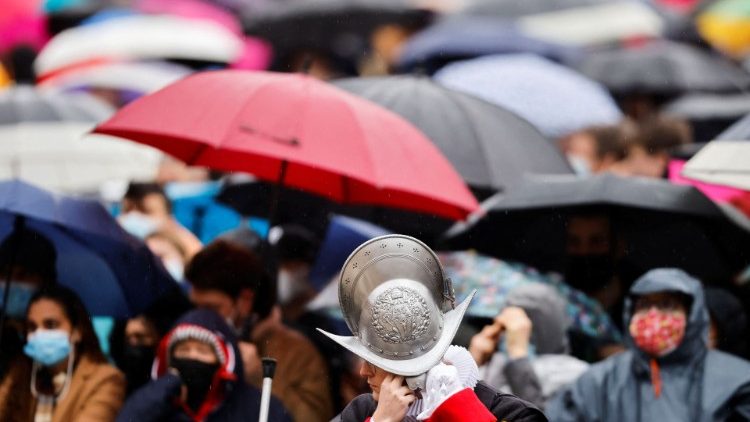 Franziskus betete für „Lösungen zur Überwindung der Gesundheitskrise und ihrer Folgen“, forderte etwas weniger drängend als bei anderen Gelegenheiten Corona-Impfstoff auch für die armen Länder und hatte auch einen Gedanken für Migranten, Flüchtlinge und Vertriebene.