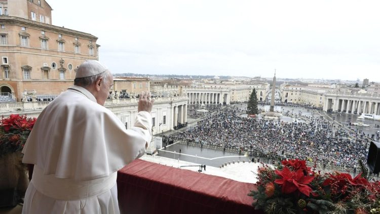 „O Christus, für uns geboren, lehre uns, mit dir auf den Wegen des Friedens zu wandeln!“ Nach der Ansprache des Papstes erinnerte ein Kardinal daran, dass der feierliche Segen „Urbi et Orbi“ (Für die Stadt und den Erdkreis) auch für alle gilt, die per Radio, TV oder neue Medien zuschalten. Und dass damit (bei Einhaltung der üblichen Bedingungen, versteht sich) ein vollkommener Ablass erlangt werden kann.