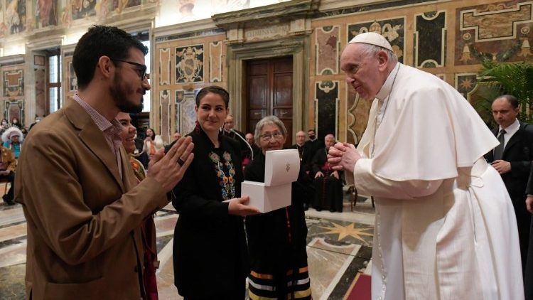 Liebe Freunde, Ihre Worte und noch mehr Ihr Zeugnis haben mich sehr bereichert. Sie haben den lebendigen Sinn Ihrer Gemeinschaften hierher nach Rom gebracht. Ich würde mich freuen, Sie wieder zu treffen und Ihre Heimat zu besuchen, wo Ihre Familien leben. Aber ich werde Sie nicht gerade im Winter besuchen… Ich verabschiede mich von Ihnen mit einem ‚Auf Wiedersehen in Kanada‘! Dort werde ich meine Verbundenheit mit Ihnen besser zum Ausdruck bringen können. In der Zwischenzeit versichere ich Sie meiner Gebete und erbitte den Segen des Schöpfers für Sie, Ihre Familien und Ihre Gemeinschaften.