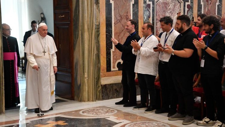 Franziskus ermunterte seine jungen Zuhörerinnen und Zuhörer – es waren Teilnehmer eines Sommercamps aus mehreren europäischen Ländern –, immer neue Fragen zu stellen. Auch in säkularisierten Gesellschaften fehle es nie an einem „Durst nach Unendlichem im menschlichen Herzen“.