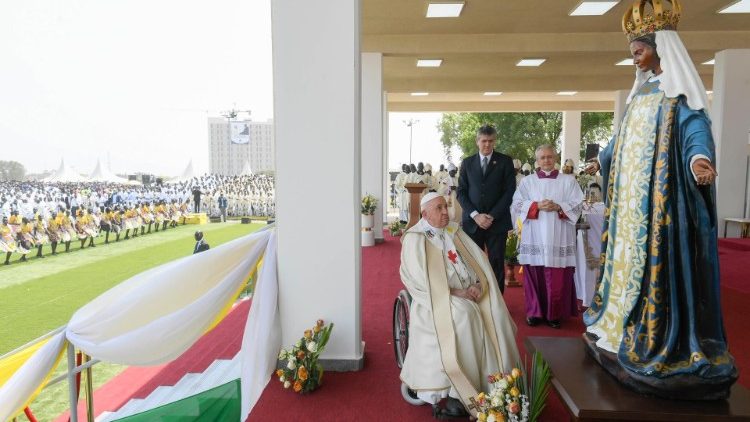Franziskus beschwor die Anwesenden dazu, nicht aufzugeben, sich nicht zurückzuziehen, denn „ohne unser bisschen“ verliere „alles an Geschmack“. Damit hob er die Rolle der christlichen Gemeinschaft für den Friedensprozess im Land hervor und nannte die Gegenmittel zu einer gespaltenen Gesellschaft: „Legen wir im Namen Jesu und seiner Seligpreisungen die Waffen des Hasses und der Rache nieder, um zum Gebet und zur Nächstenliebe zu greifen; überwinden wir jene Antipathien und Abneigungen, die im Laufe der Zeit chronisch geworden sind und die Gefahr bergen, Stämme und ethnische Gruppen gegeneinander aufzubringen; lernen wir, das Salz der Vergebung, das brennt, aber heilt, auf unsere Wunden zu streuen.“
