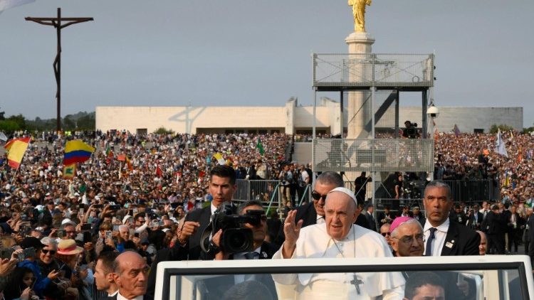 Die Muttergottes ist 1917 in dem portugiesischen Ort drei Hirtenkindern erschienen; Franziskus hat 2013 beim Amtsantritt sein Pontifikat unter den besonderen Schutz Unserer Lieben Frau von Fatima gestellt. Es war schon sein zweiter Besuch in Fatima; 2017 hatte er hier den hundertsten Jahrestag der Erscheinungen begangen. Der Papst hält sich derzeit in Portugal auf, um am 37. katholischen Weltjugendtag (WJT) von Lissabon teilzunehmen. Viele junge Teilnehmende des WJT hatten sich ebenfalls auf den Weg nach Fatima gemacht, ihre Fahnen gaben der Szenerie einen bunten Anstrich.