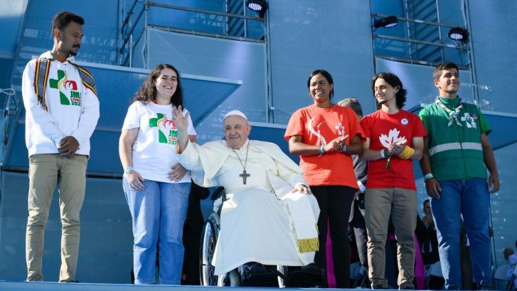 Auf der mehrstufigen Bühne, wo ganz oben Papst Franziskus saß, führten junge Künstler bei der Begegnung bunte Tanz-Choreografien auf. Der Gesang von Solisten und verschiedenen Chören sorgte für Emotionen. In verschiedenen Sprachen wurden Ausschnitte aus Briefen von jungen Leuten an den Papst verlesen, die Hoffnungen, Fragen, Ängste und Gebete junger Menschen aufgriffen. Dank an Papst Franziskus für seine Ermutigungen und seine Anwesenheit kam dabei zum Ausdruck. Im Anschluss wurden die Briefe Papst Franziskus übergeben. Mit der Hymne des Weltjugendtages klang die Begegnung aus.