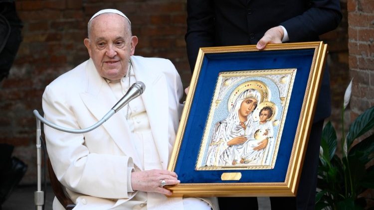 Nicht nur der Papst hielt eine Ansprache und überreichte ein Gastgeschenk, sondern auch die Insassinnen. Franziskus hatte eine Ikone von Maria mit Kind mitgebracht und wies die Gefangenen darauf hin, wie zärtlich die Mutter auf das Jesuskind blicke. Die inhaftierten Frauen können ihre Kinder bis zum Alter von drei Jahren bei sich behalten; in dem ziemlich heruntergekommenen, aber malerischen Gebäudekomplex gibt es auch Spielplätze.