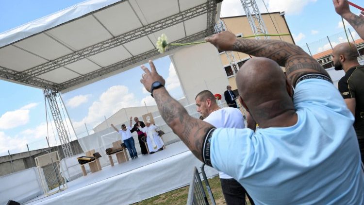 „Und in dieser Menschheit, hier, in Ihnen allen, in uns allen, ist heute das Antlitz Christi gegenwärtig, das Antlitz des Gottes der Barmherzigkeit und der Vergebung. Gott verkörpert jeden und vergibt immer... Wir kennen die Situation in den Gefängnissen, die oft überfüllt sind, mit den daraus resultierenden Spannungen und der Müdigkeit“, fügte er hinzu, „deshalb möchte ich euch sagen, dass ich euch nahe bin, und ich erneuere meinen Appell, vor allem an diejenigen, die in diesem Bereich tätig sein können, sich weiterhin für die Verbesserung des Lebens im Gefängnis einzusetzen.“