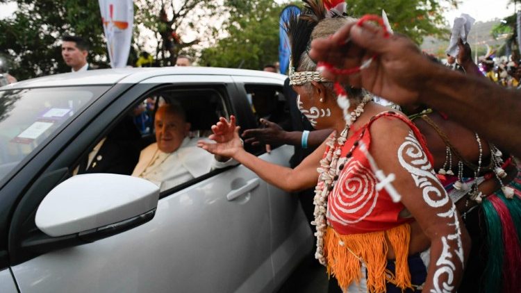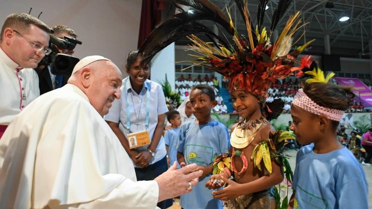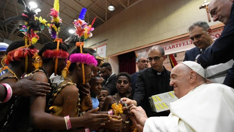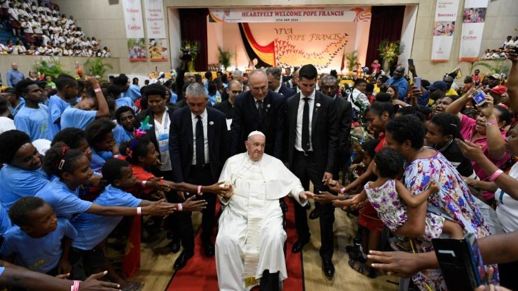 Die schwierige Realität des Alltags in Papua-Neuguinea sprang einem bei diesem Papst-Termin nicht ins Auge, denn die etwa 800 jungen Leute tanzten und sangen vor Freude über den Besuch, und viele waren zur Feier des Tages mit bunten T-Shirts neu eingekleidet worden. In den Fragen allerdings, die sie an den Papst stellten, wurde dann doch einiges von ihrer dramatischen Lage spürbar.