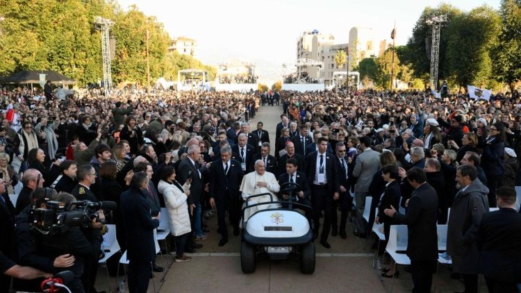Die Eucharistiefeier auf der „Place d’Austerlitz“ zu Füßen einer monumentalen Napoleon-Statue und eines Riesenrads war der Höhepunkt der eintägigen Visite des Papstes auf der französischen Mittelmeerinsel. Franziskus ist der erste Papst, der Korsika einen Besuch abgestattet hat. Anlass der Papstreise war die Teilnahme an einem Kongress zum Thema Volksfrömmigkeit.