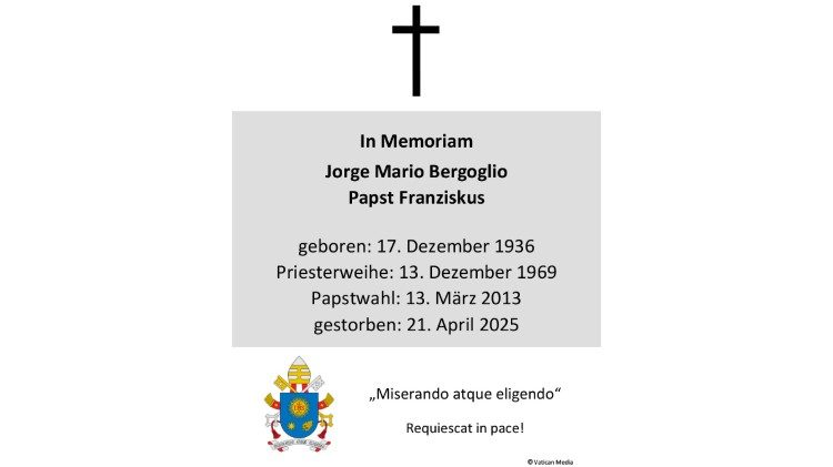 Der „Verein der Freunde von Radio Vatikan“ versendet auf Anfrage hin Bildchen zum Gedenken an den argentinischen Pontifex, der zwölf Jahre am Ruder des Schiffleins Petri stand. Auf der Vorderseite ist ein Porträt des Verstorbenen zu sehen; die Rückseite bietet sein Wappen, seinen Wahlspruch sowie seine wesentlichen Lebensdaten.
