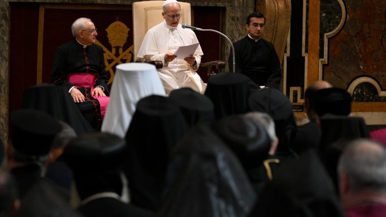 Bei der Audienz für die Vertreter der Ökumene und anderer Religionen ging Papst Leo auch auf Synodalität ein und berief sich hier erneut auf Papst Franziskus: