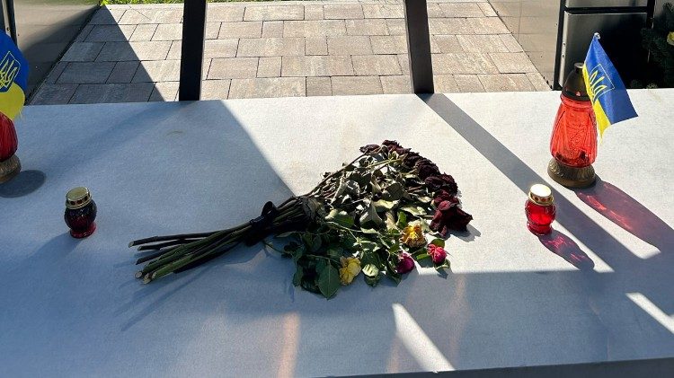 Heute erhebt sich über der Stelle des Massengrabs von Butscha ein Mahnmal für die Ermordeten. Zwischen ihren Namen und Lebensdaten ist eine Darstellung der Pietà angebracht. In der orthodoxen Kirche gleich daneben zeigen Fotos den schrecklichen Anblick, der sich den Befreiern vor dreieinhalb Jahren bot; darüber hängen Ikonen.
